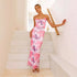 A wearable work of art, the Aria Dress is cut from a fluid, lightweight fabric that drapes beautifully over the body. Its graceful sheath silhouette skims your form, creating a statuesque line, while the elegant slash neckline perfectly frames the collarbones. The vibrant, watercolor-inspired print is a masterpiece of color and movement, ensuring an unforgettable impression at any sun-drenched celebration or elegant evening affair.