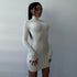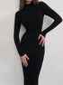 A second-skin silhouette designed to celebrate your form. The Embrace Knit Dress is masterfully crafted from a soft, sculpting ribbed knit that offers both warmth and an incredible, body-hugging fit. Its elegant turtleneck and long sleeves create a sleek, continuous line, making it a powerful statement of minimalist sophistication. This is the piece you wear when you want to feel both comfortable and utterly confident, effortlessly transitioning from day to night.