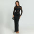Refined and irresistibly elegant — the Lacéra Dress embodies timeless allure. Designed with delicate lace details and long sleeves, it blends sophistication with modern femininity. The high-waisted silhouette sculpts the body beautifully, creating a naturally flattering fit that transitions effortlessly from day to night. Made from premium polyester fiber, it offers both structure and comfort, giving you confidence with every move.