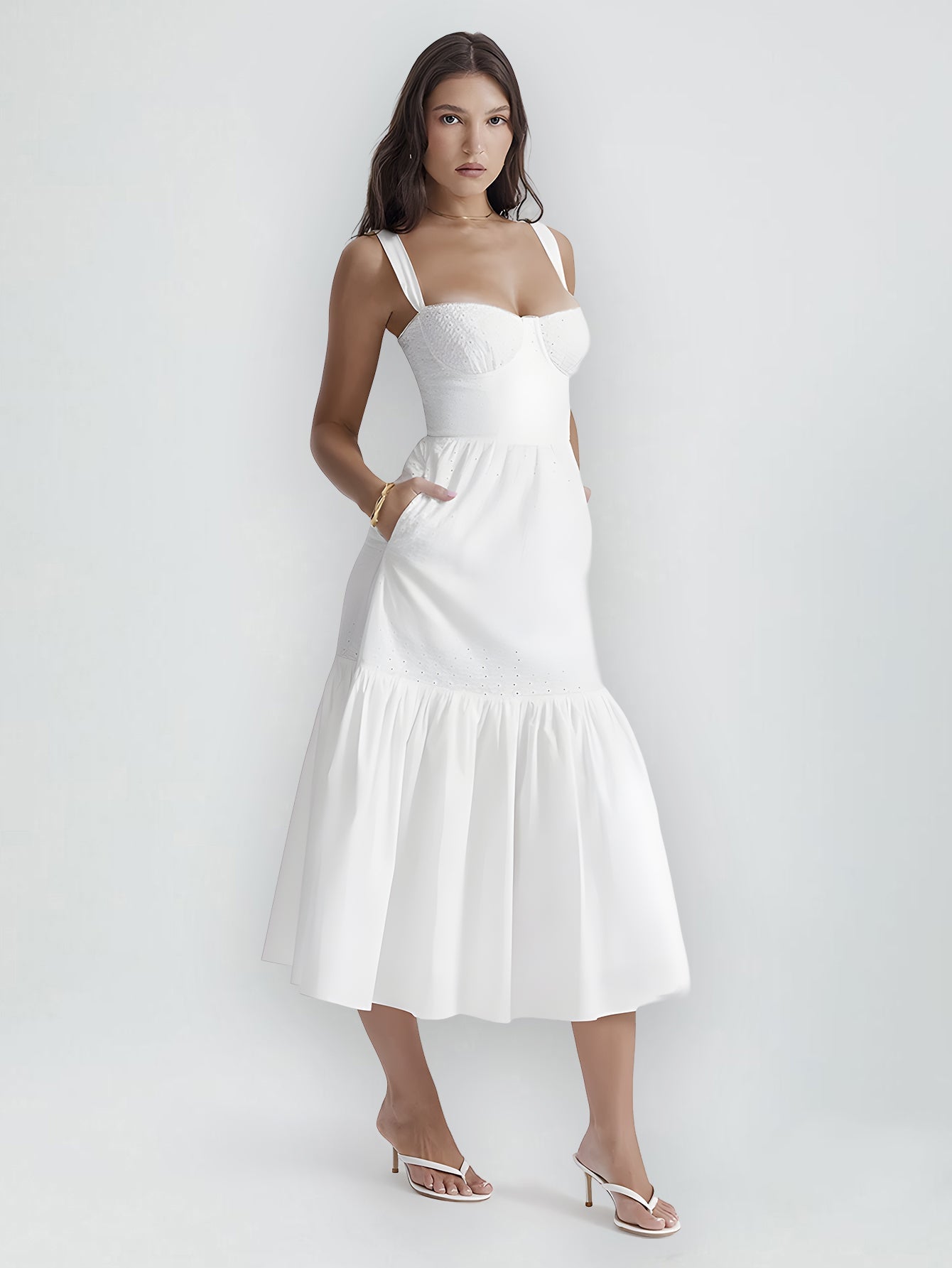 Step into summer with Bloomé, the ultimate blend of comfort and elegance. Crafted from a soft linen and cotton blend, this slip dress offers a sophisticated jacquard design with a flattering midi length. The V-neckline and spaghetti straps make it perfect for any casual outing, while the ball gown silhouette adds a touch of grace. Whether you’re attending a summer event or enjoying a casual day out, Bloomé ensures you stand out in style.